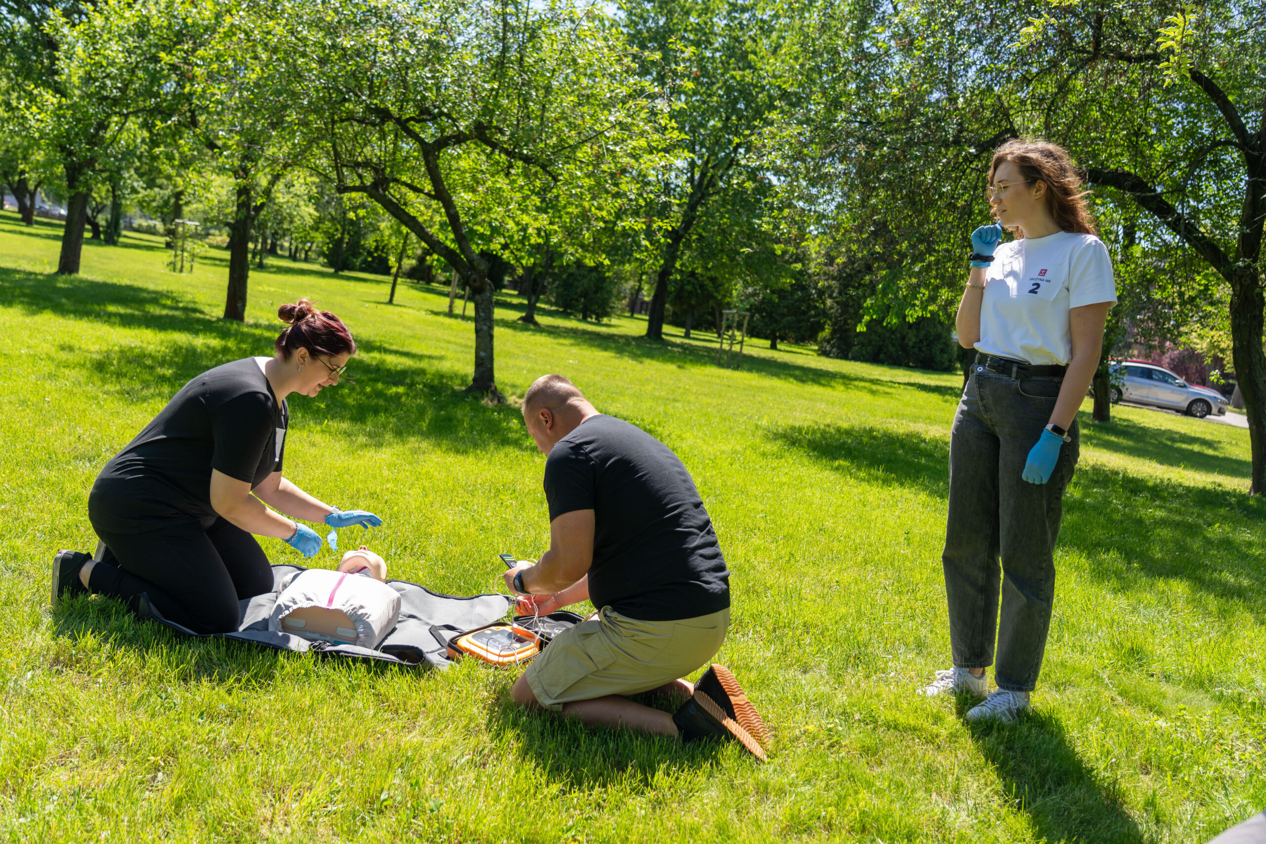 Na stacji BLS AED uczestnicy ćwiczą udzielanie pomocy osobie dorosłej w stanie nagłego zatrzymania krążenia, zgodnie z aktualnymi wytycznymi ERC. Do dyspozycji mają zaawansowane fantomy QCPR z elektronicznym systemem monitorowania jakości RKO, który dostarcza precyzyjnych informacji zwrotnych na temat głębokości, tempa ucisków oraz skuteczności wentylacji.