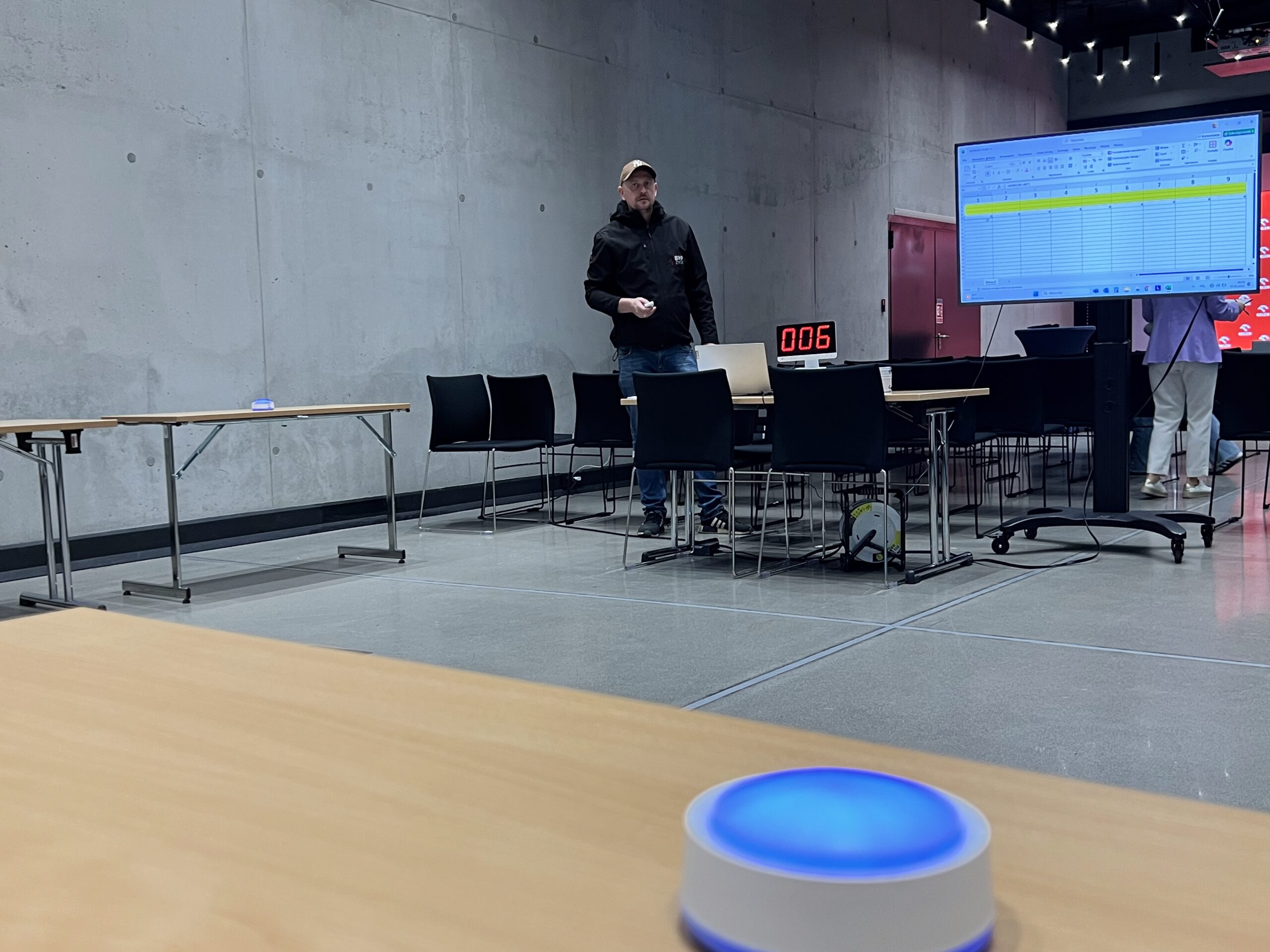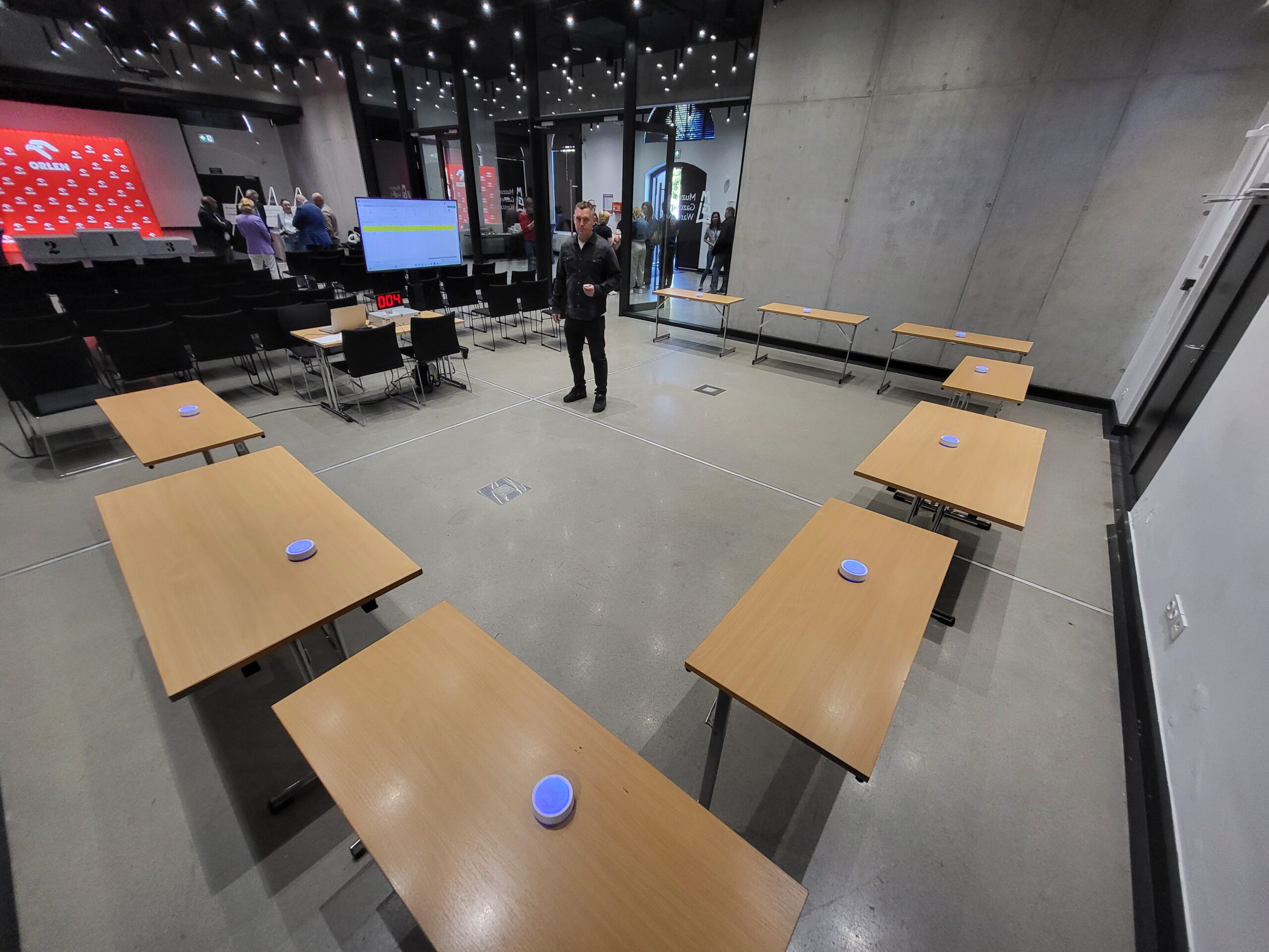 Logistyka: Nasze 10 stanowisk pozwala na jednoczesną grę 10 osób lub 10 drużyn. Przy zespołach 3-osobowych, w jednej rundzie może brać udział nawet 30 osób, co czyni nasz konkurs BHP idealnym narzędziem do aktywizacji dużych grup.