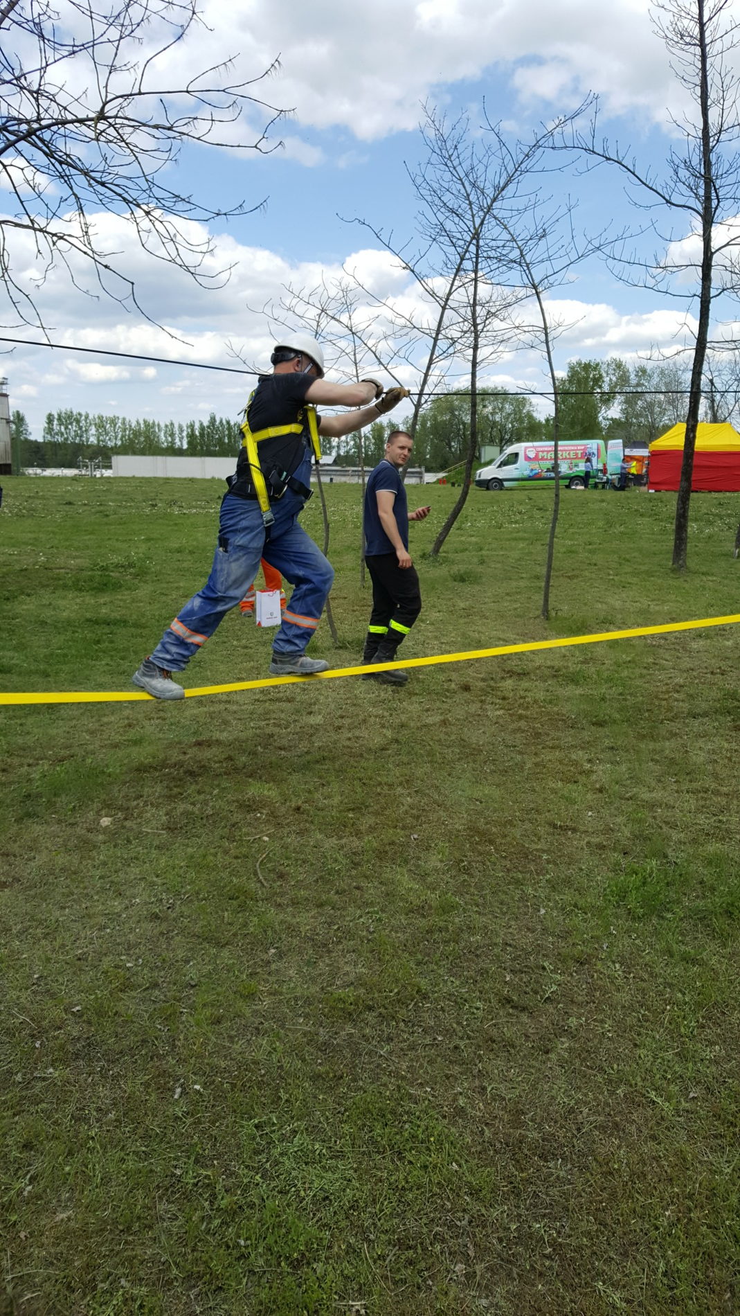 Podczas Safety Day prace na wysokości uczestnicy mają okazję doświadczyć realistycznych warunków pracy na wysokości poprzez ćwiczenie polegające na przejściu po linie naciągniętej między drzewami lub słupami. To zadanie pozwala poznać zasady prawidłowego zakładania środków ochrony indywidualnej oraz ich funkcjonowania w praktyce. Ćwiczenie odbywa się w formie rywalizacji, ponieważ jest wykonywane na czas, co dodatkowo motywuje uczestników do skupienia i efektywnego działania. Safety Day prace na wysokości to nie tylko szkolenie, ale także angażujące doświadczenie, które zwiększa świadomość zagrożeń i poprawia bezpieczeństwo w miejscu pracy