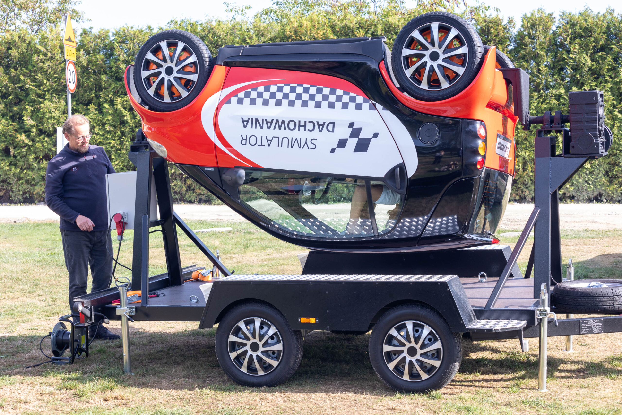 Podczas Dni Bezpieczeństwa organizujemy specjalne sesje z wykorzystaniem naszego dwuosobowego symulatora dachowania. To doskonała okazja, aby w praktyce nauczyć się, jak reagować w sytuacji dachowania oraz zrozumieć, jakie siły działają na ciało podczas takiego zdarzenia.