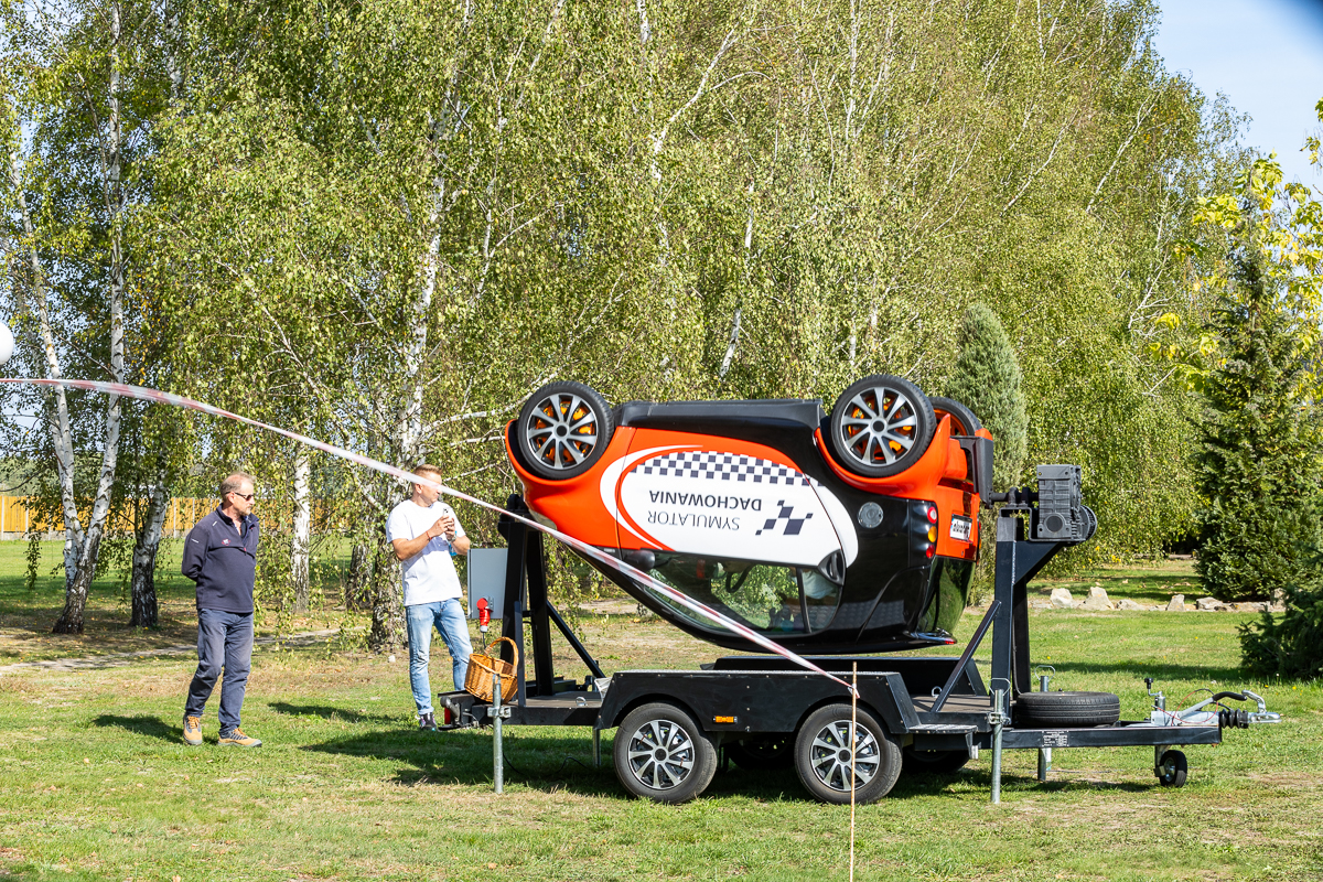 Nauka właściwych reakcji: Symulator dachowania pozwala na praktyczne przećwiczenie odpowiednich zachowań podczas wypadku, takich jak prawidłowe ułożenie ciała czy techniki ewakuacji z pojazdu.