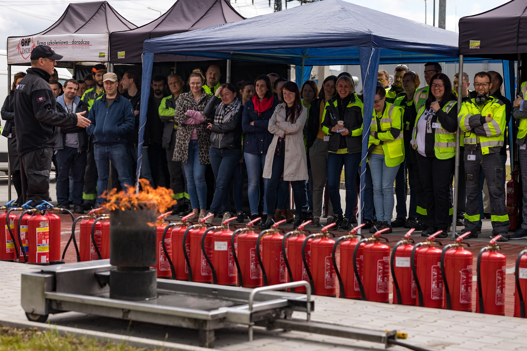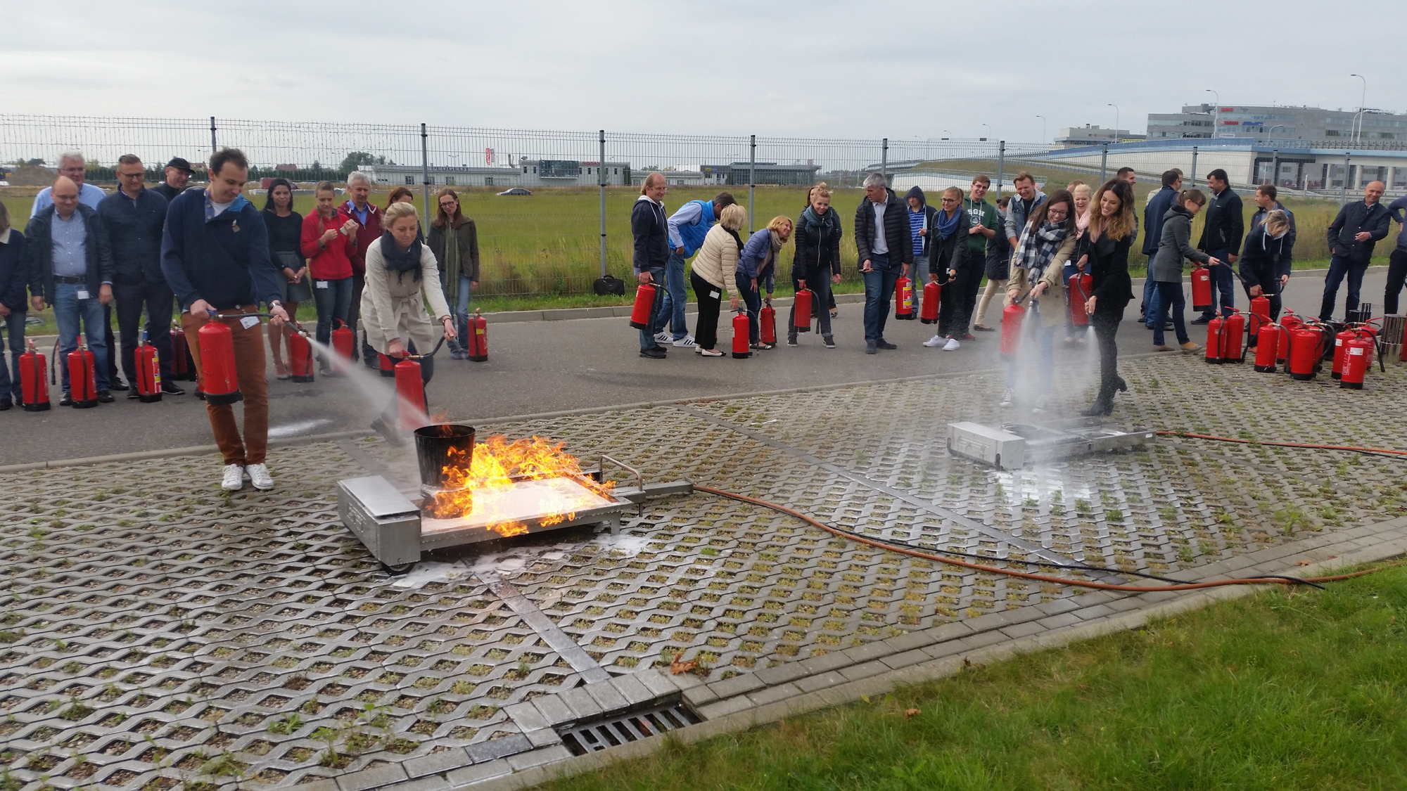 Na tej stacji uczestnicy przechodzą intensywne szkolenie z zakresu obsługi gaśnicy z wykorzystaniem nowoczesnego, ekologicznego trenażera pożarów. Każda osoba otrzymuje indywidualną gaśnicę, co pozwala na praktyczne przećwiczenie procedur w bezpiecznych warunkach.